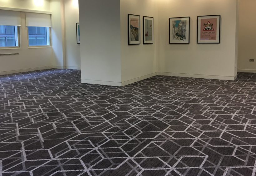 That isn’t the only reason why 133 Houndsditch is wall-to-wall with our Colortec carpets throughout the conference areas and meeting rooms. Bespoke highly creative design played a major factor.